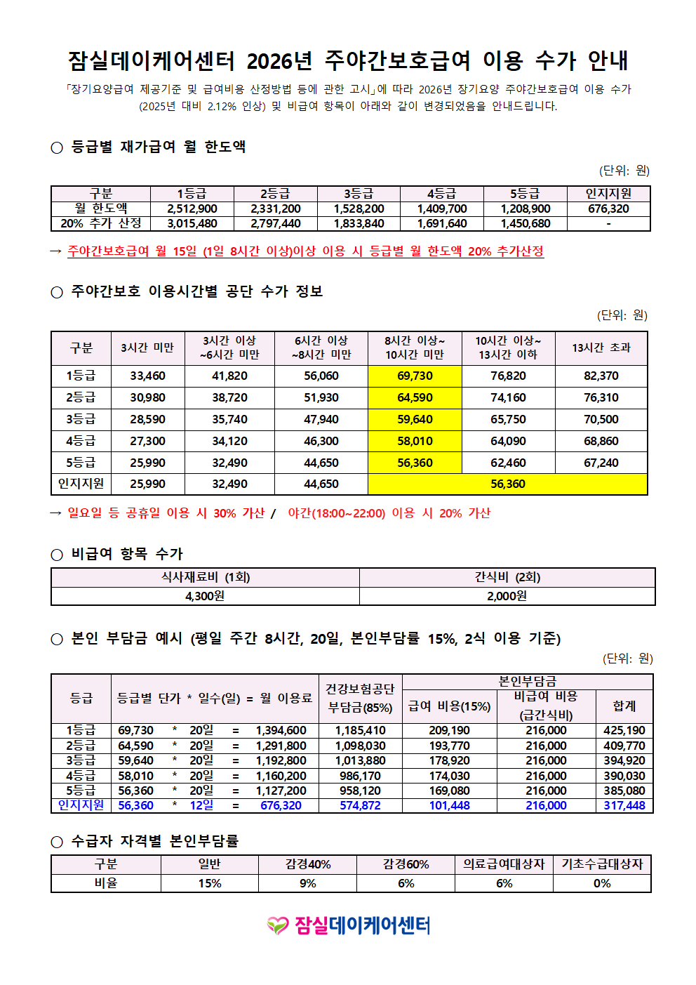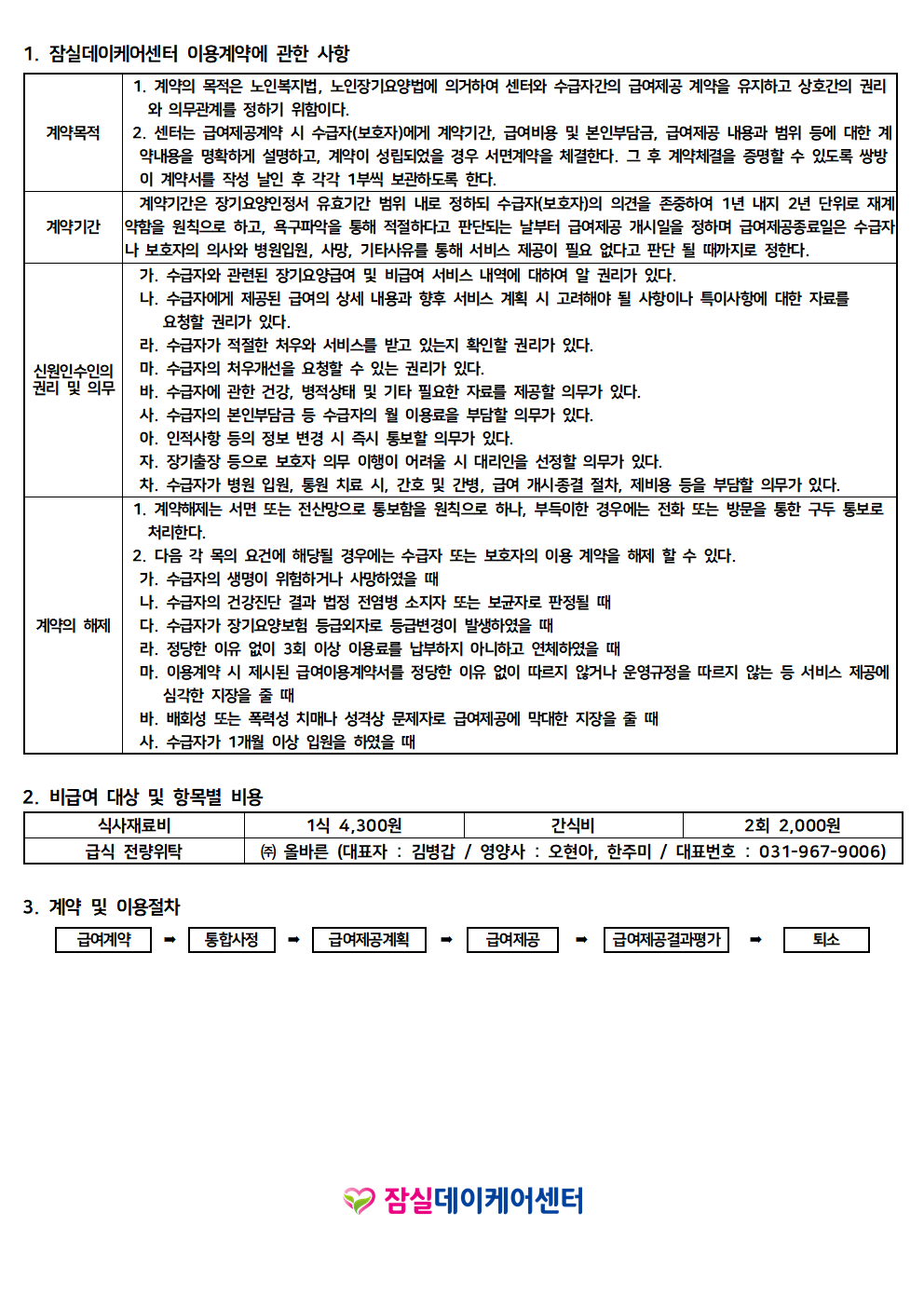 잠실데이케어센터 이용계약에 관한 사항